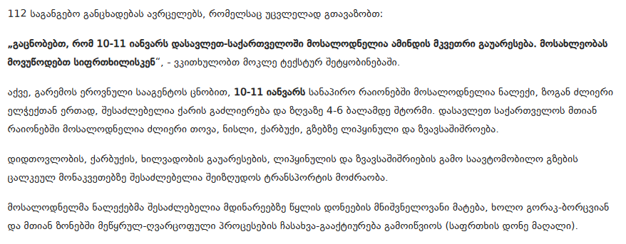 Post Views: 5,641 პოსტის ნავიგაცია ახალი გადაწყვეტილება, რომელიც 12 იანვრიდან ამოქმედდება„ინფორმაცია არ შეესაბამება სიმართლეს…“ – ჯანდაცვის სამინისტრო სპეციალურ განცხადებას ავრცელებს