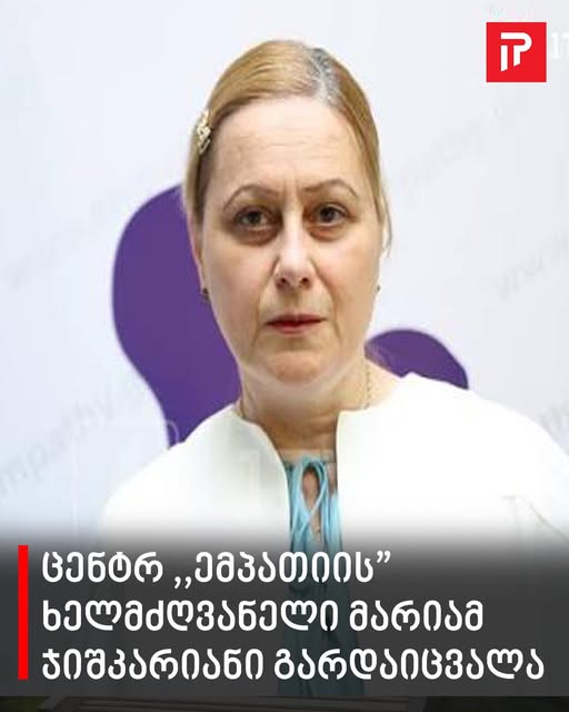 60 წლის ასაკში, სარეაბილიტაციო ცენტრ „ემპათიის“ ხელმძღვანელი, ექიმი მარიამ ჯიშკარიანი გარდაიცვალა. ინფორმაციას სოციალურ ქსელში მისი ახლობლები ავრცელებენ. ჯიშკარიანის გარდაცვალების მიზეზი ამ დროისთვის უცნობია. Post Views: 409 პოსტის ნავიგაცია რას მოუტანს 5 დეკემბრის სავსემთვარეობა ზოდიაქოს თითოეულ ნიშანს – ასტროლოგის პროგნოზიმ ქუჩებზე წყალი 12 საათით შეწყდება – გადაამოწმეთ თქვენი მისამართი