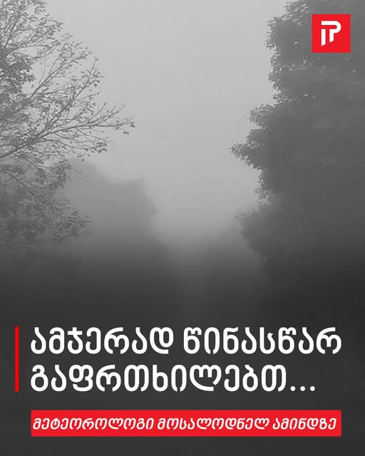 „მეგობრებო, სანაპირო კურორტებზე მოსალოდნელია ნისლი – ეს ჩვეულებრივი ბუნებრივი მოვლენაა და არაფერია საგანგაშო. წინა ნისლიანობას აჟიოტაჟი მოჰყვა, ამიტომ ამჯერად წინასწარ გაფრთხილებთ დატკბით დასვენებით!“ – წერს მეტეოროლოგი კობა ფარტენაძე.